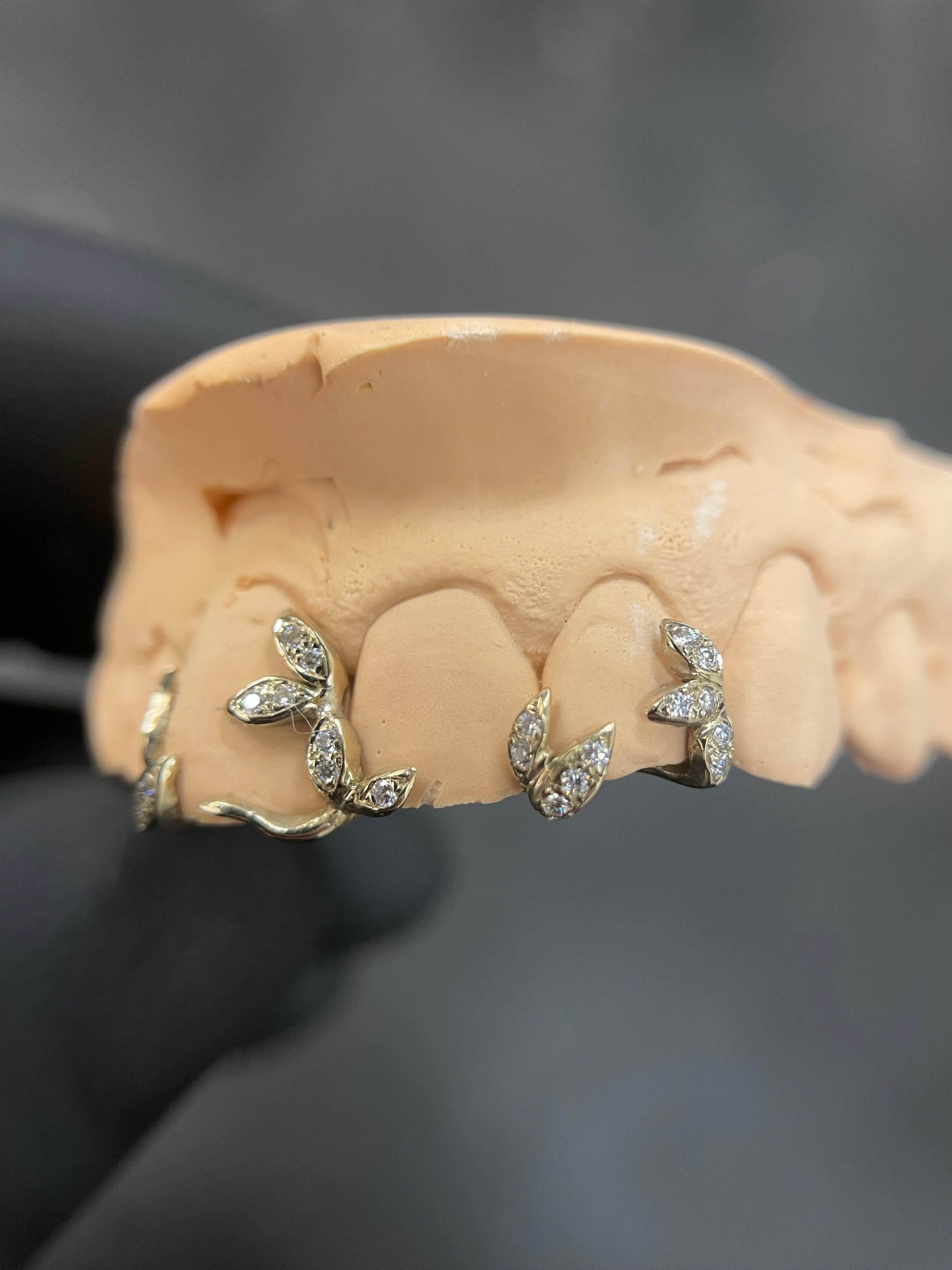 Each piece is handmade to complement the natural shape of your tooth, ensuring a tailored fit and unique look. No two designs are ever the same. While we’ve listed a classic option using Moissanites, this design can be created with a wide variety of stones to match your personal style.