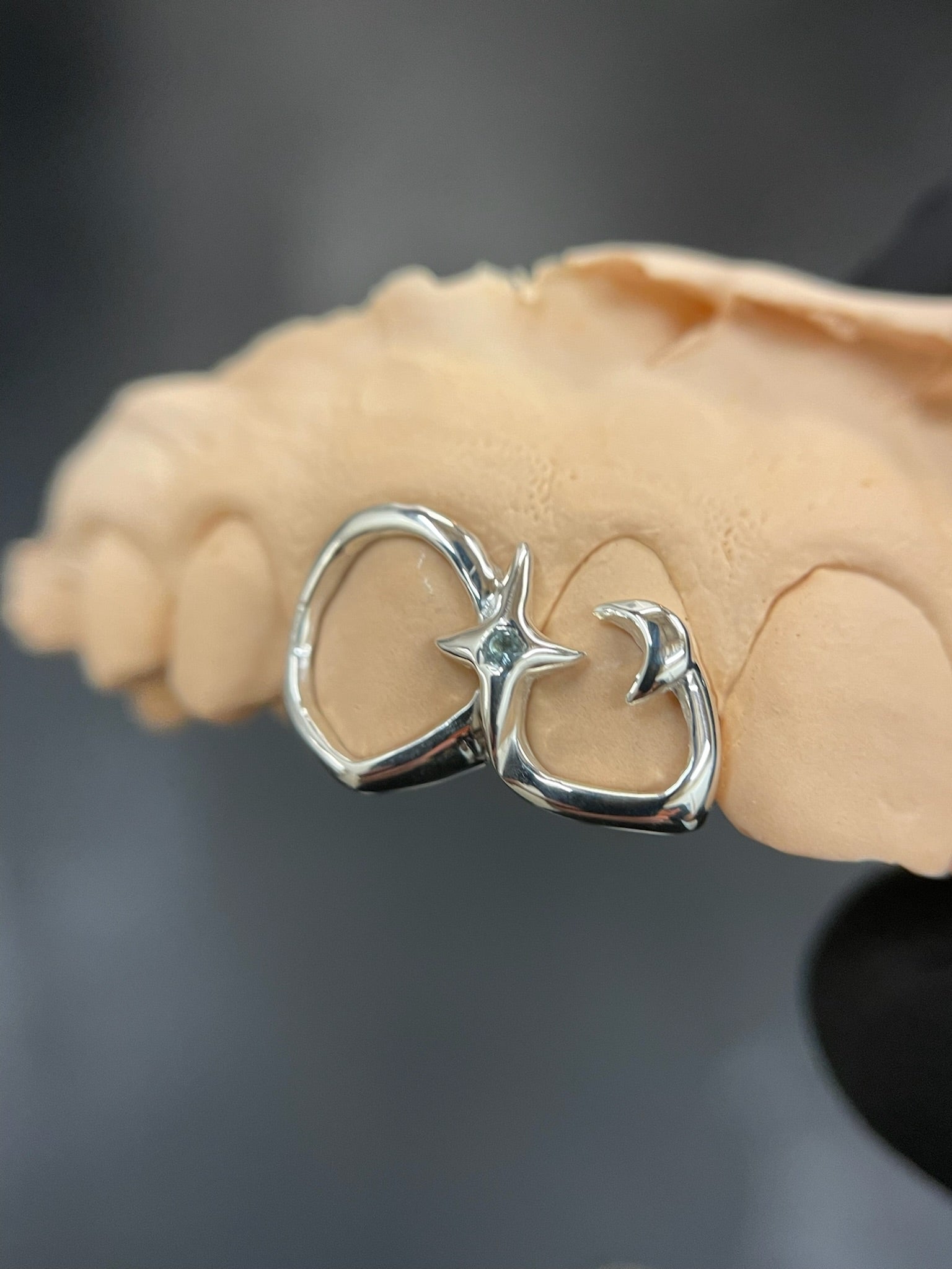 Featuring a mini moon and sparkle set with a crystal centre, choose your stone from the menu below or contact us to discuss stone options.